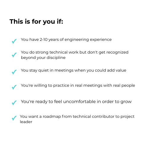 A 26-week system for engineers who want to go beyond answering technical questions, and lead the projects they work on.