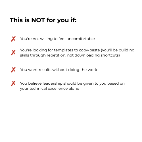 You keep lifetime access to all lessons. More importantly, you'll have a Leadership Playbook filled with phrases, patterns, and approaches you've personally tested.And you'll be positioned for the next leadership opportunity that opens up.