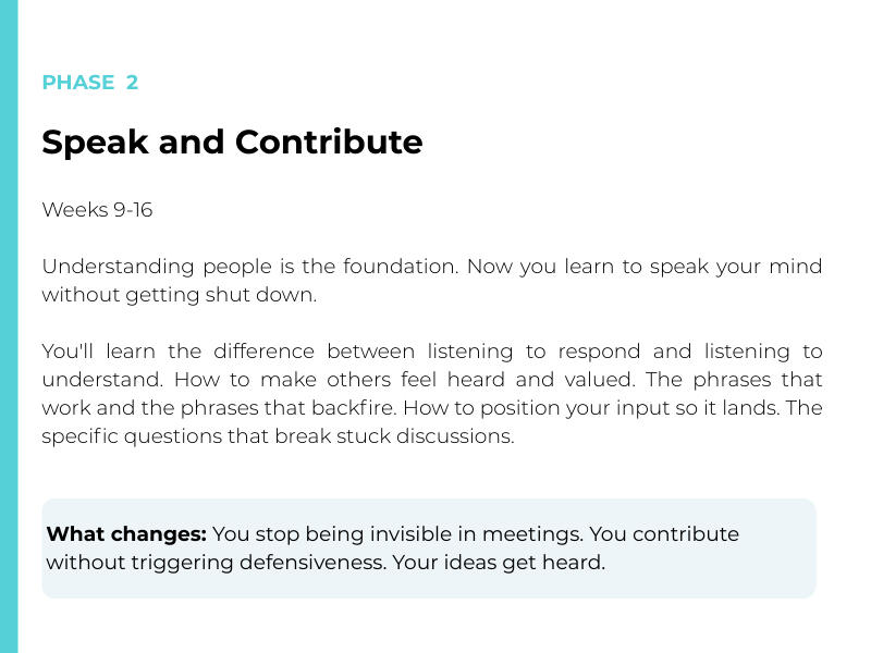 You deliver strong technical work. You see problems others miss. You have insights that could move projects forward.But in meetings, you stay quiet. You're not sure if it's your place to speak. When you do speak up, it doesn't come across the way you intended. Someone tells you to stay in your lane, or less politely, to mind your own business.Meanwhile, you watch less experienced people lead conversations. People with less technical knowledge. People who somehow always seem to know what to say.And you keep waiting. For someone to notice your work. For someone to tap you on the shoulder. For someone to finally give you a chance.That tap on the shoulder you're waiting for?It isn't coming.